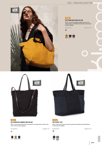 310 g/m² • Sac à main en coton canvas. Anses et bandoulières en cuir. Grandes poches sur le devant. Poche 310 g/m² • Grand sac fourre-tout en coton canvas. 2 grandes poches à l’extérieure de couleurs différentes.