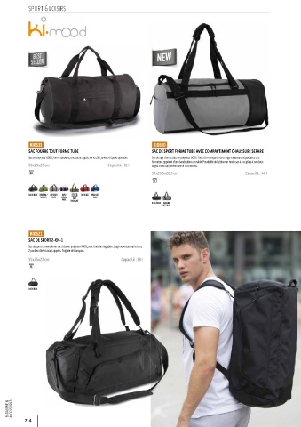Sac de sport convertible en sac à dos en polyester 900D, avec bretelles réglables. Large ouverture par le haut.