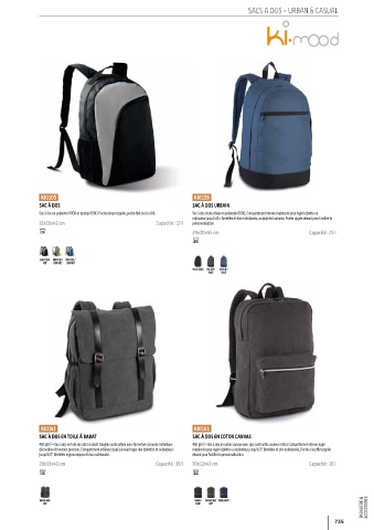 450 g/m² • Sac à dos en toile de coton à rabat. Sangles contrastées avec fermeture à boucle métallique 450 g/m² • Sac à dos en coton canvas avec zips contrastés couleur métal. Compartiment interne zippé
