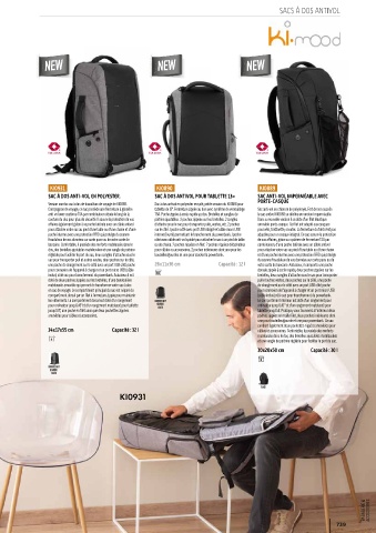 anti-vol avec système TSA par combinaison située le long de la TSA. Poche zippée à accès rapide au dos. Bretelles et sangles de le sac antivol KI0888 se décline en version imperméable.