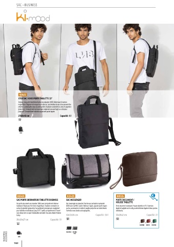 pour tablettes et ordinateurs jusqu’à 13’’. 2 petits compartiments à l’avant Fermeture avec bande auto-agrippante. extérieures.