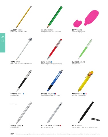 204 Decoration shown on products represent a variety of techniques and positions • Other decoration techniques and positions available • Contact us for more information