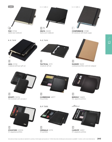 Decoration shown on products represent a variety of techniques and positions • Other decoration techniques and positions available • Contact us for more information 243