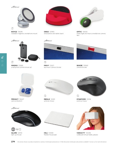 274 Decoration shown on products represent a variety of techniques and positions • Other decoration techniques and positions available • Contact us for more information