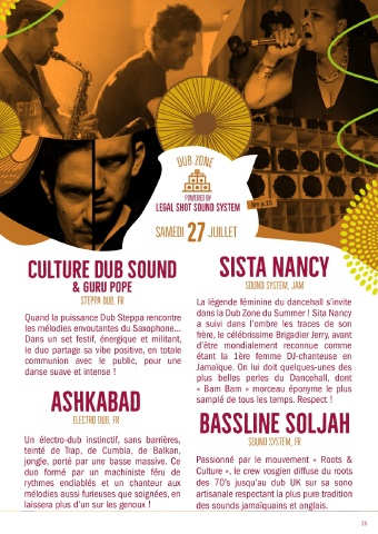 samedi 27 JUILlet En déambulation LEGAL SHOT SOUND SYSTEM lire p.15