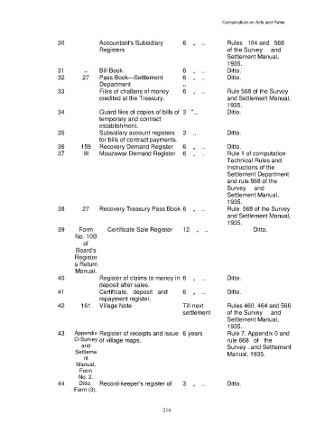 33 Files of challans of money 6 „ .. Rule 568 of the Survey