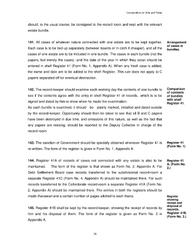 141. All cases of whatever nature connected with one estate are to be kept together. Arrangement