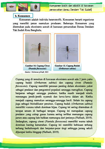 sebagai predator dan pengontrol populasi serangga merugikan. Capung