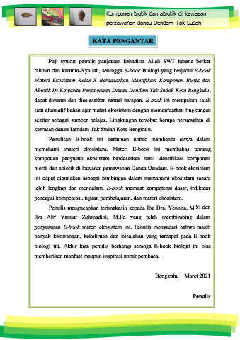 penyususan E-book materi ekosistem ini. Penulis menyadari bahwa masih
