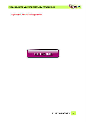 E-BOOK FAKTOR & DAMPAK KERUSAKAN LINGKUNGAN Kerjakan Soal dibawah ini dengan teliti ! BY : ELLY PUSPITASARI, S. PD 10