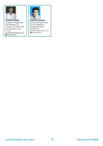 ALUMNI DATABASE 2020, JISCE 8 DEPARTMENT OF BME