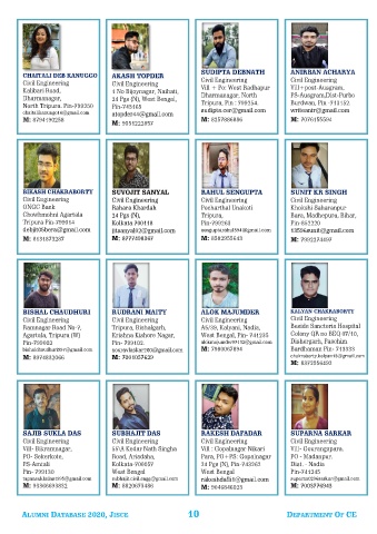ALUMNI DATABASE 2020, JISCE 10 DEPARTMENT OF CE