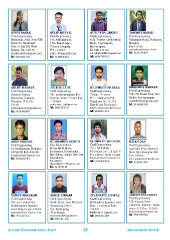 ALUMNI DATABASE 2020, JISCE 12 DEPARTMENT OF CE