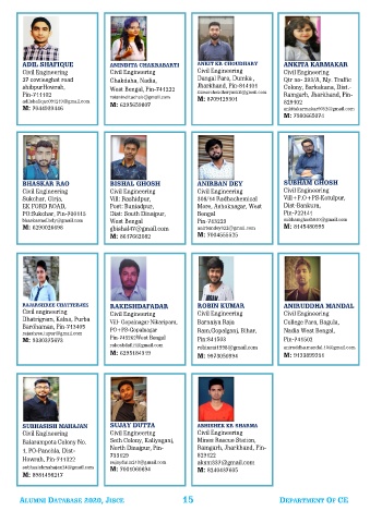 ALUMNI DATABASE 2020, JISCE 15 DEPARTMENT OF CE