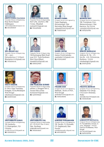 ALUMNI DATABASE 2020, JISCE 22 DEPARTMENT OF CSE