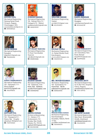 ALUMNI DATABASE 2020, JISCE 28 DEPARTMENT OF ME