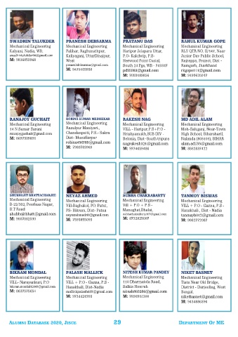 ALUMNI DATABASE 2020, JISCE 29 DEPARTMENT OF ME