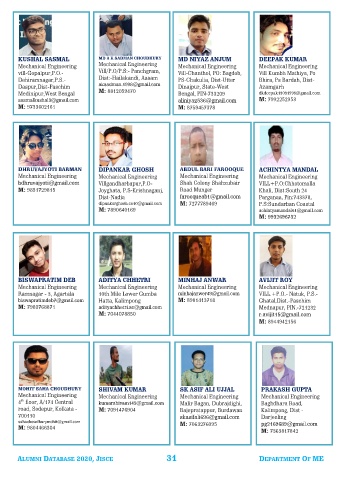 ALUMNI DATABASE 2020, JISCE 31 DEPARTMENT OF ME
