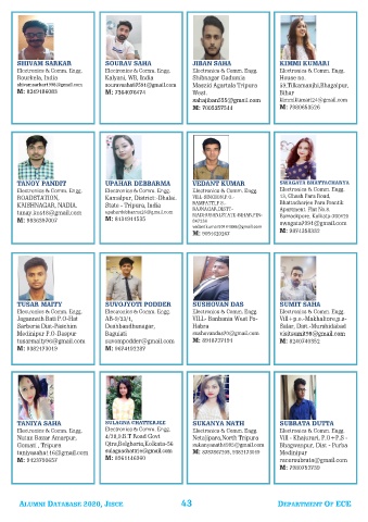 ALUMNI DATABASE 2020, JISCE 43 DEPARTMENT OF ECE
