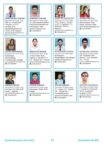 ALUMNI DATABASE 2020, JISCE 47 DEPARTMENT OF ECE