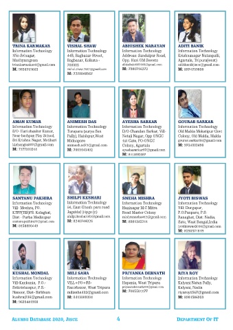 ALUMNI DATABASE 2020, JISCE 4 DEPARTMENT OF IT