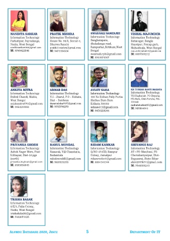 ALUMNI DATABASE 2020, JISCE 5 DEPARTMENT OF IT