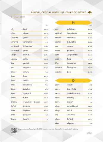 ดัชนีรายชือข้าราชการตุลาการศาลยุติธรรม JUDICIAL OFFICIAL INDEX LIST, COURT OF JUSTICE