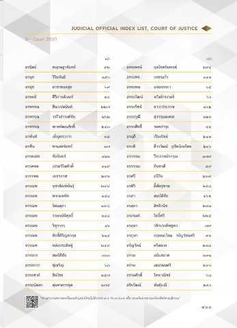 ดัชนีรายชือข้าราชการตุลาการศาลยุติธรรม JUDICIAL OFFICIAL INDEX LIST, COURT OF JUSTICE