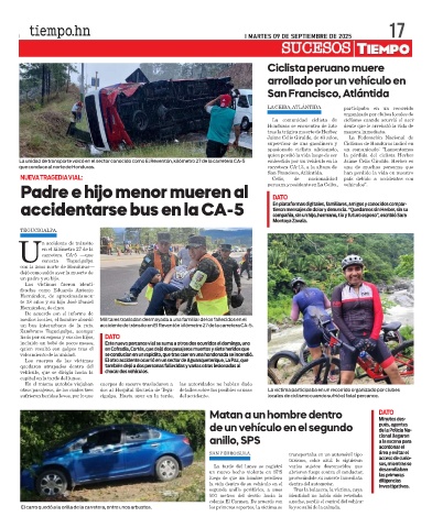 Padre e hijo menor mueren al peruana y residente en La Ceiba, vehículos”.