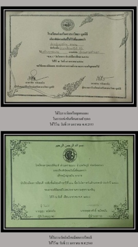 ได้รับรางวัลเหรียญทองแดง ในการแข่งขันเขียนตามค าบอก ให้ไว้ ณ วันที่ 19 มกราคม พ.ศ.2553 ได้รับรางวัลนักเรียนมีผลการเรียนดี ให้ไว้ ณ วันที่ 11 มกราคม พ.ศ.2560