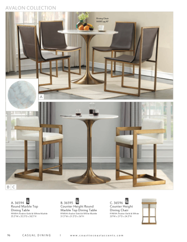 FINISH: Avalon Gold & White Marble 35.5”W x 35.5”D x 30.5”H