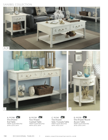 Cocktail Table FINISH: Sanibel White Rub 48”W x 26”D x 20”H