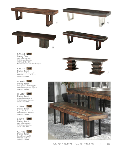 Dining Bench Capri Collection pg 92 FINISH: Capri Olive Grey 69”W x 16”D x 18”H