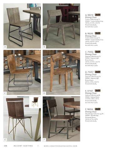 Dining Chair Sedona Collection pg 86 FINISH: Sedona Brown 17.5”W x 18”D x 35”H Priced individually,