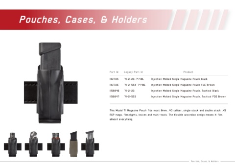 This Model 71 Magazine Pouch fits most 9mm, .40 caliber, single stack and double stack .45