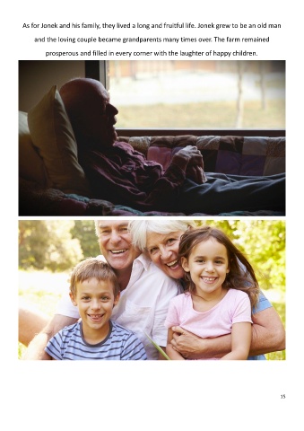 As for Jonek and his family, they lived a long and fruitful life. Jonek grew to be an old man and the loving couple became grandparents many times over. The farm remained prosperous and filled in every corner with the laughter of happy children. 15