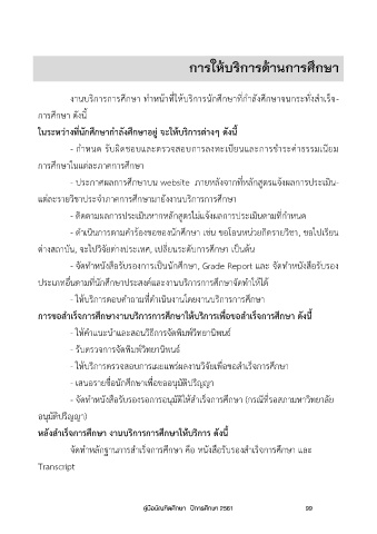 งานบริการการศึกษา ท าหน้าที่ให้บริการนักศึกษาที่ก าลังศึกษาจนกระทั่งส าเร็จ-