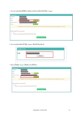 7. ทําการตรวจสอบอีเมลลที่ใชในการติดตอ หากตองการเปลี่ยนใหคลิกที่ปุม “Change” 8. ทําการกรอกอีเมลลแลวคลิ๊กที่ปุม “Submit” เพื่อบันทึกขอมูลอีเมลล 9. ทําการคลิ๊กที่ปุม “Choose” เพื่อเลือกอาจารยที่ปรึกษา คู่มือบัณฑิตศึกษา ปีการศึกษา 2561 131