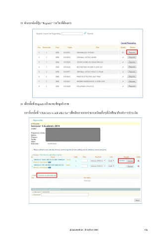 15. ทําการคลิกที่ปุม “Regrade” รายวิชาที่ตองการ 16. เมื่อคลิ๊กที่ Regrade แลวจะพบขอมูลดังภาพ จากนั้นคลิ๊กที่ “Click here to add other fee” เพื่อเลือกรายการคาธรรมเนียมอื่นๆที่นักศึกษาตองทําการชําระเงิน คู่มือบัณฑิตศึกษา ปีการศึกษา 2561 134