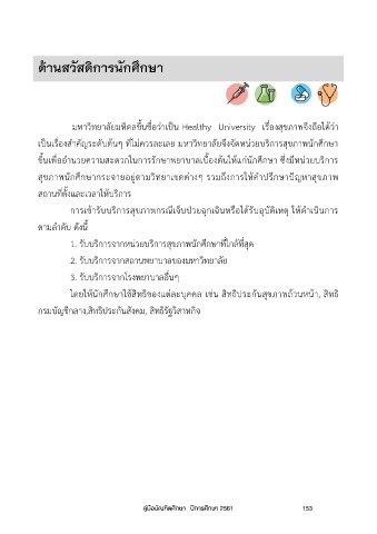 เป็นเรื่องส าคัญระดับต้นๆ ที่ไม่ควรละเลย มหาวิทยาลัยจึงจัดหน่วยบริการสุขภาพนักศึกษา