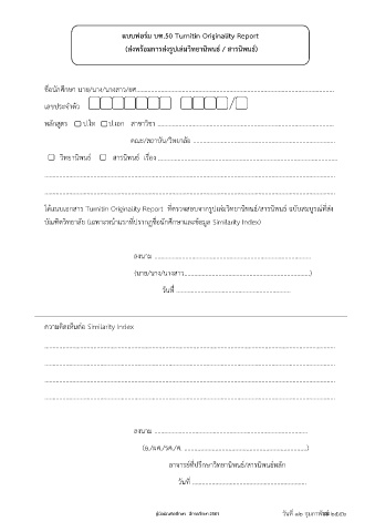 แบบฟอร์ม บฑ.50 Turnitin Originality Report