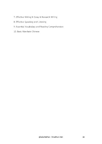7. Effective Writing II: Essay & Research Writing 8. Effective Speaking and Listening 9. Essential Vocabulary and Reading Comprehension 10. Basic Mandarin Chinese คู่มือบัณฑิตศึกษา ปีการศึกษา 2561 89