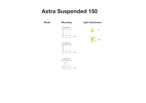 Astra Suspended 150 Model Mounting Light Distribution Suspended S1 LD 150mm 30% LD/LI 70% Suspended S2 150mm Suspended S3 150mm