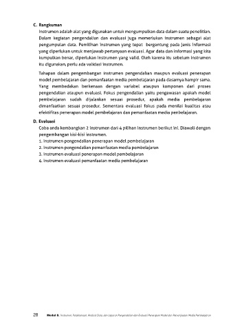 28 Modul 8. Instrumen, Pelaksanaan, Analisis Data, dan Laporan Pengendalian dan Evaluasi Penerapan Model dan Pemanfaatan Media Pembelajaran