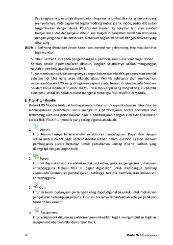 secara fisik. Fitur-fitur moodle yang sering digunakan adalah:
