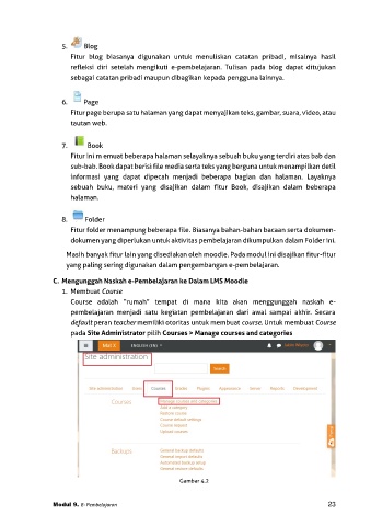 Masih banyak fitur lain yang disediakan oleh moodle. Pada modul ini disajikan fitur-fitur