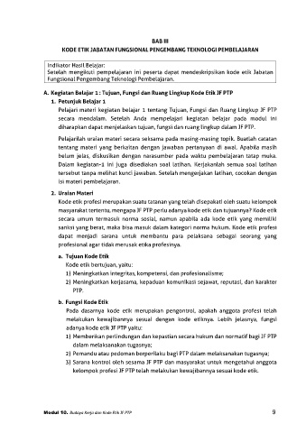 A. Kegiatan Belajar 1 : Tujuan, Fungsi dan Ruang Lingkup Kode Etik JF PTP