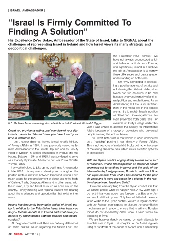 H.E. Mr Ze'ev Boker presenting his credentials to Irish President Michael D.Higgins. example at Trinity College earlier this