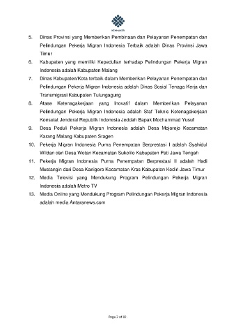 9. Desa Peduli Pekerja Migran Indonesia adalah Desa Mojorejo Kecamatan