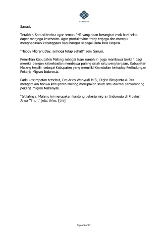 "Happy Migrant Day, semoga tetap sehat!" seru Sanusi.